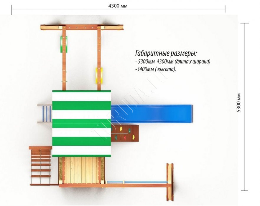 Площадка Парус 6 обладает довольно широким функционалом (который по желанию можно легко расширить). Детская площадка предназначена для дачи, коттеджа.